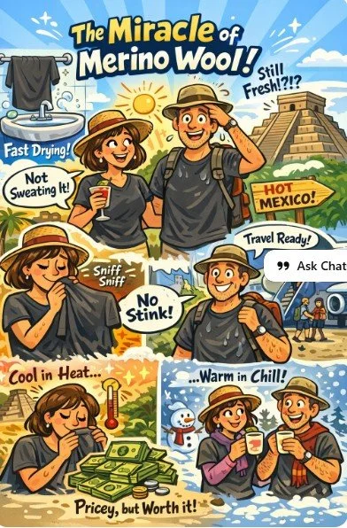 Merino wool: the fabric I fully expected to mock — until it shocked me into submission. One expensive T-shirt, two sweaty travelers, and zero smell later, I became a reluctant believer. From fast-drying magic to odor-resistant wizardry, this travel-friendly fabric completely changed how I pack, dress, and judge overpriced clothing. If you think merino wool is overhyped, I did too… until I wore it.